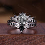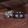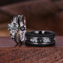 3PCS Black Rutilated Quartz Couple Ring Set Nature Inspired His and Hers Matching Wedding Band Mens Tungsten Ring Unique Bridal Ring Set