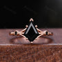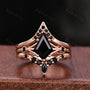 3PCS kite cut black onyx engagement ring set rose gold black spinel stacking band unique curved matching rings wedding bridal ring set women