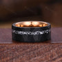 ►His ring is Rose Gold and Black Tungsten Carbide with Meteorite inaly.