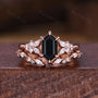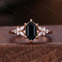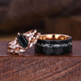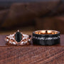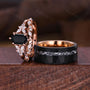 3PCS Vintage Black Onyx Couples Ring Set Unique Cluster Ring His and Hers Wedding Band Mens Tungsten Ring Hexagon cut Black Onyx Bridal Set