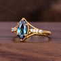 Alexandrite Engagement Ring - 14K Solid Yellow Gold Ring - Unique Art Deco Moissanite Wedding Ring - Vintage June Birthstone Promise Ring