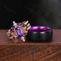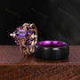 Antique Amethyst Couples Ring Set Vintage Double Curved Amethyst Band Rose Gold His and Her Wedding Band Promise Ring For Men and Women Gift