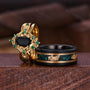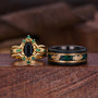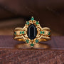 Antique Black Onyx Couples Ring Set Vintage Double Curved Emerald Band Yellow Gold His and Her Wedding Band Promise Ring For Men and Women