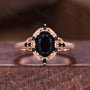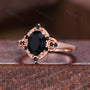 Antique Black Onyx Engagement Ring Rose Gold Oval Cut Ring For Women Vintage Black Spinel Ring Branch Leaf Bridal Promise Ring
