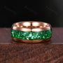 ►His ring is Rose Gold Tungsten Carbide with crushed emerald inlay.