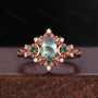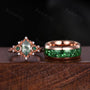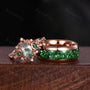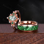 Antique Moss Agate Emerald Couple Ring Vintage Rose Gold Rings His and Hers Matching Wedding Band Mens Crushed Emerald Band Moss Agate Ring
