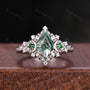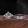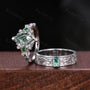 Here we have a Antique Natural Moss Agate Couples Ring Set Leaf Style Promise Ring For Men For Women Vintage His and Hers Wedding Band Mens Baguette Ring