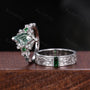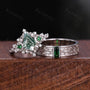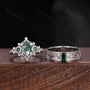 Antique Natural Moss Agate Couples Ring Set Silver Promise Ring For Men For Women Vintage His and Hers Wedding Band Mens Emerald Ring
