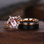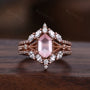 Antique Rose Quartz Couples Ring Set Vintage Double Curved Diamond Band Rose Gold His and Her Wedding Band Promise Ring For Men and Women