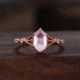 ?Center stone: 5x9mm hexagon cut natural rose quartz