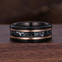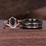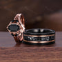 Art Deco Black Onyx Ring Set For Couples Rose Gold His and Hers Promise Ring Mens Meteorite Tungsten Band Black Gem Bridal Wedding Ring Set