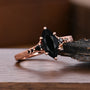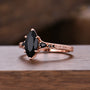 Art Deco Filigree Black Onyx Engagement Ring, Vintage Marquise Cut Black Onyx Ring For Women, Rose Gold Anniversary Ring