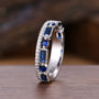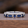 Baguette Blue Sapphire Wedding Band: Sterling Silver Half Eternity Ring