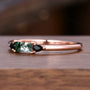 Baguette Cut Moss Agate Wedding Band Rose Gold Black Spinel Wedding Ring Three Stone Stacking Matching Band Gemstone Anniversary Ring