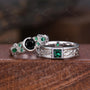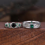 Black onyx Emerald couples ring set vintage twig leaf ring sterling silver His and Hers wedding band Mens emerald ring Antique promise ring