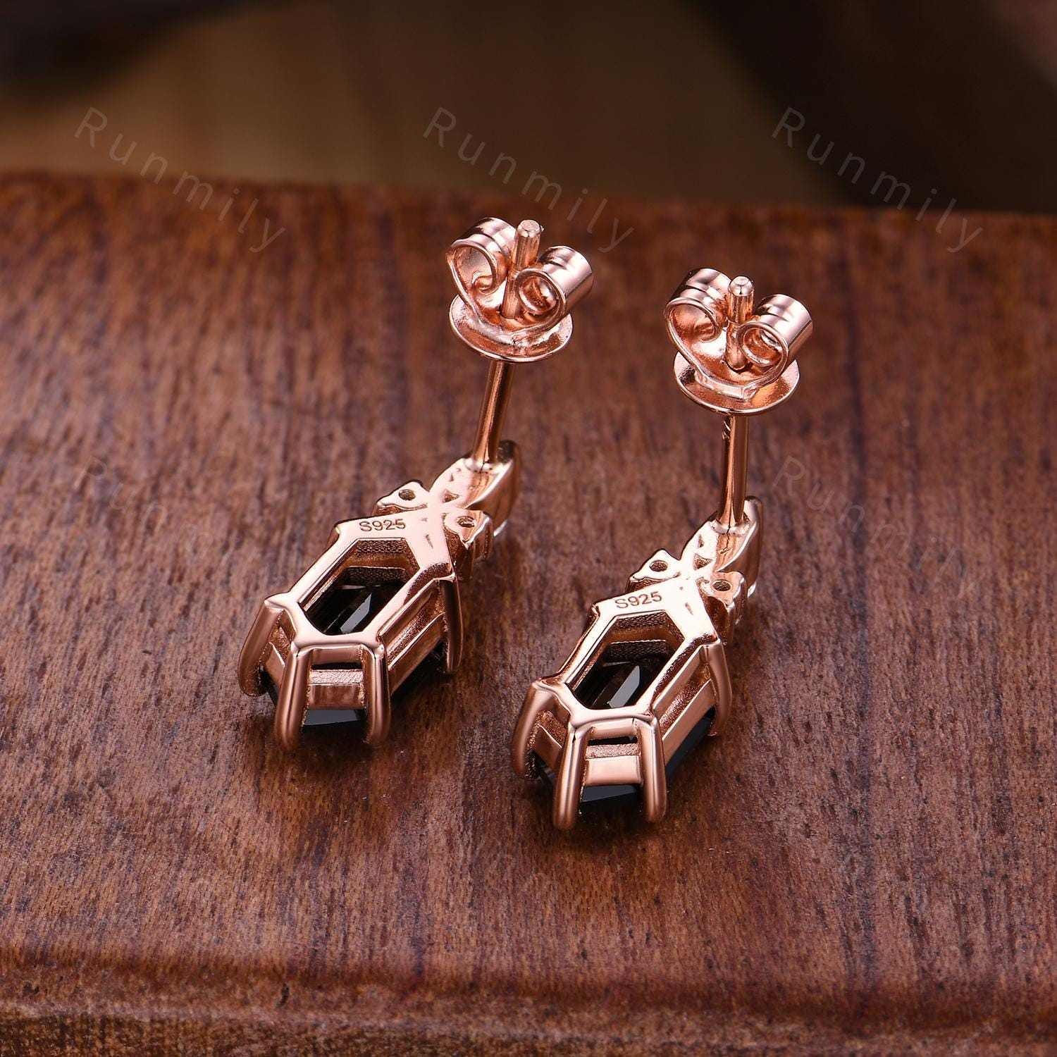►Center stone: 5x9mm hexagon cut natural black onyx