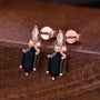 Black Onyx Hexagon Cut Necklace - Rose Gold Retro Necklace, Pave Onyx Charm Piece, Black Gemstone Jewelry, Bridal Jewelry, Anniversary Gift