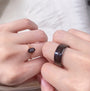 ►His ring is Black Tungsten Carbide with black sandstone
