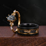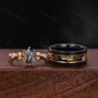 Black Rutilated Quartz Couples Ring Set Yellow Gold Matching His and Hers Wedding Band Mens Meteorite Gold Leaf Ring Natural Black Gemstone