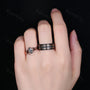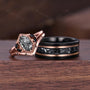 Black Rutilated Quartz, Meteorite Couples Ring Set- His and Hers Cosmic Wedding Bands Rose Gold/Tungsten Matching Promise Rings Gift
