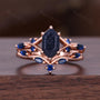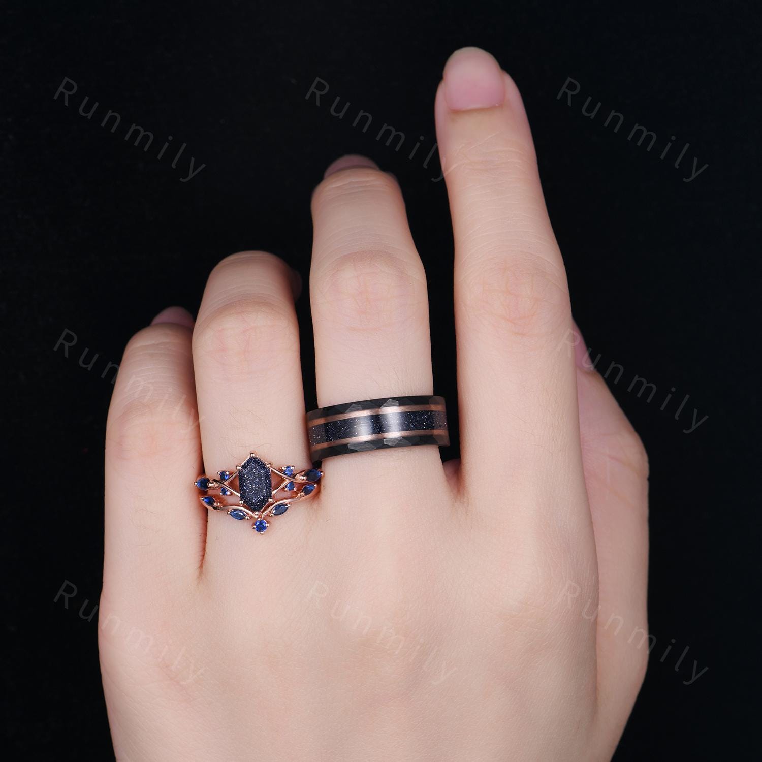Blue Nebula Couples Ring Set Vintage Galaxy Sandstone His and Hers Ring Rose Gold Matching Promise Ring For Men and Women Blue Sapphire Ring