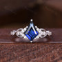 ?Center stone: 7x10mm kite cut lab created blue sapphire
