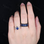 Here we have a Blue Nebula Ring Set, Kite Sapphire Couple Promise Rings, His and Hers Wedding Band, Mens Crushed Sapphire Ring, September Birthstone Rings
