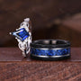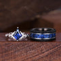 Blue Nebula Ring Set, Kite Sapphire Couple Promise Rings, His and Hers Wedding Band, Mens Crushed Sapphire Ring, September Birthstone Rings