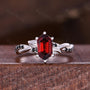 Branch Leaf Garnet couples ring set silver & tungsten matching promise ring vintage His and Hers wedding band Mens garnet ring January rings