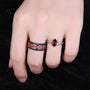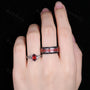 Here we have a Branch Leaf Garnet couples ring set silver & tungsten matching promise ring vintage His and Hers wedding band Mens garnet ring January rings.