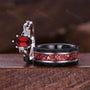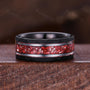 ?His ring is Black Tungsten Carbide with crushed garnet inlay.