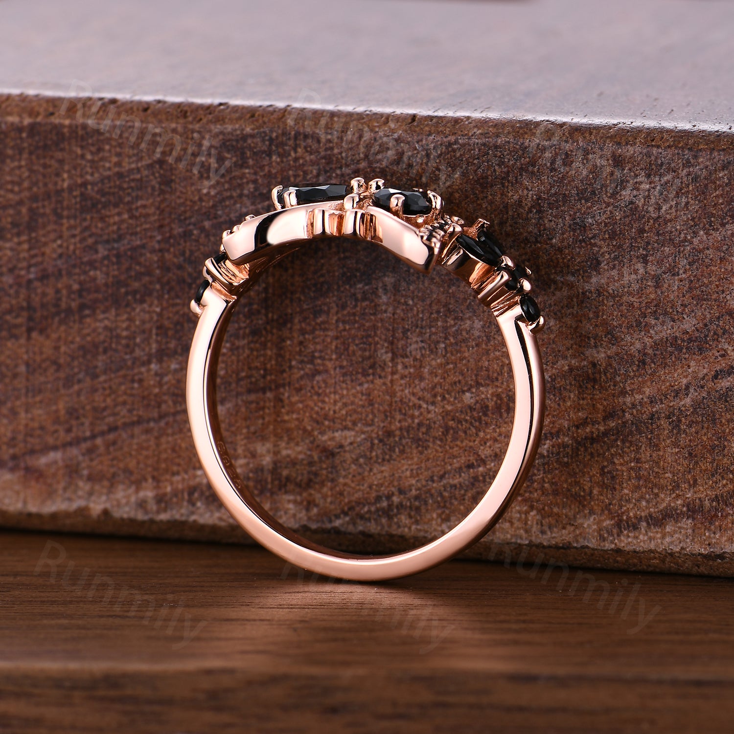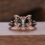 Butterfly Black Onyx Engagement Ring Pear Shaped Cluster Women Wedding Ring Anniversary Gift