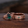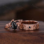 Coffin Cut Black Onyx Couples Ring Vintage Rose Gold Matching Ring Set Twig Leaf His and Hers Wedding Band Mens Onyx Ring Black Gem Ring