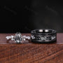 Coffin cut Black Rutilated Quartz Couple Ring Silver Matching Ring Set His and Hers Wedding Band Natural Black Gemstone Couples Ring Gift