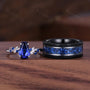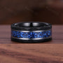 ►His ring is Black Gold Tungsten Carbide with Crushed Blue Sapphire Inlay