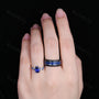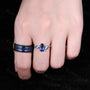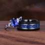 Coffin Cut Blue Sapphire Couples Ring Set - Unique His and Hers Wedding Band - Nature Inspired September Birthstone Matching Promise Rings