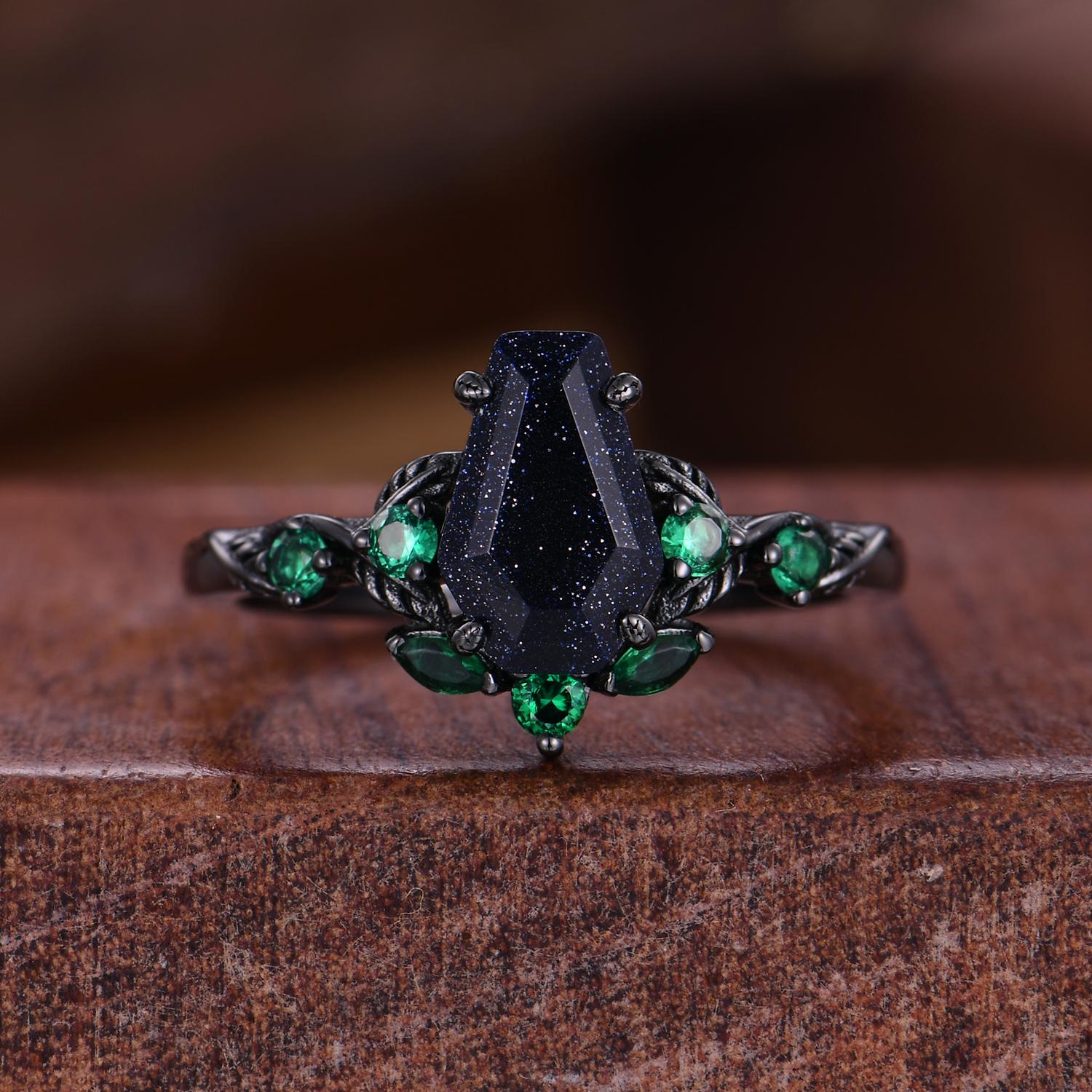 Coffin cut galaxy sandstone couples ring set starry sky matching promise rings His and Her wedding band Mens hammered ring anniversary gifts
