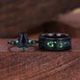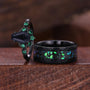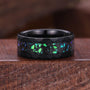 ►His ring is Black Tungsten Carbide with blue-green opal.