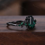 Coffin cut green emerald engagement ring Gothic Black gold ring Art deco leaf design emerald wedding ring nature inspired ring promise ring
