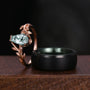 Coffin cut Moss Agate Couples Ring His and Hers Wedding Band Set Mens Black Green Ring Women Nature Inspired Ring Couple Promise Ring Set