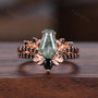 Coffin Cut Natural Moss Agate Couples Ring Rose Gold Moss Agate and Emerald Wedding Ring Set Vintage Unique Vine Leaf Matching Promise Ring