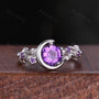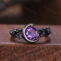 Crescent Amethyst Couple Ring Set Gothic Black Gold Ring Vintage His and Hers Wedding Band Men's Tungsten Ring Purple Gemstone Rings