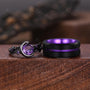 Here we have a Crescent Amethyst Couple Ring Set Gothic Black Gold Ring Vintage His and Hers Wedding Band Men's Tungsten Ring Purple Gemstone Rings