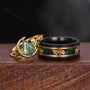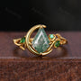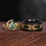 Crescent Moon Moss Agate Couples Ring Yellow Gold Matching Ring Set His and Hers Wedding Band Mens Fire Opal Ring Green Promise Ring Set