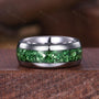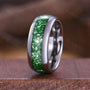 Crushed Emerald Men's Wedding Band, Silver Tungsten Ring, 8mm Men's Wedding Ring, Polished Dome Comfort Fit, Anniversary Gift for Him