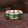 Here we have a Crushed Emerald Men's Wedding Band, Silver Tungsten Ring, 8mm Men's Wedding Ring, Polished Dome Comfort Fit, Anniversary Gift for Him. This beautiful ring measures 8mm wide. It is a silver tungsten ring with a comfort band.