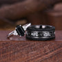 Delicate Black Onyx Couples Ring Hexagon cut Black Gem Engagement Ring His and Hers Wedding Band Mens Tungsten Ring Unique Anniversary Gift