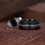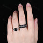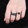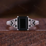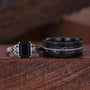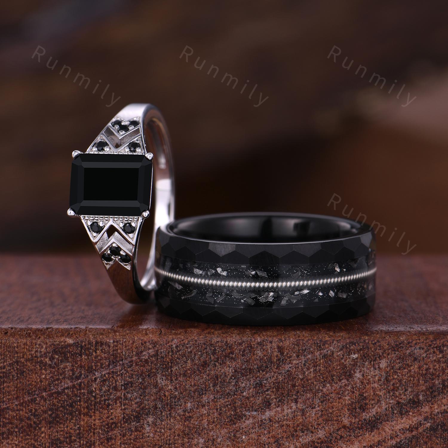 Here we have a Emerald cut Black Onyx Couples Ring Set Antique His and Hers Wedding Band Mens Black Tungsten Ring Natural Black Gemstone Anniversary Rings.