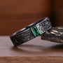 Emerald Mens Wedding Band Gothic Baguette Cut Band Art Deco Leaf Design Unique Black Gold Mens Stacking Band Gift For Him