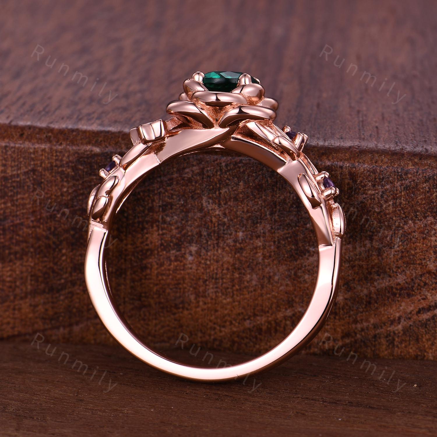 Here we have a Flower Emerald Engagement Ring Rose Gold Nature Inspired Leaf Wedding Ring Floral Amethyst Ring Branch Ring Vintage Promise Bridal Ring